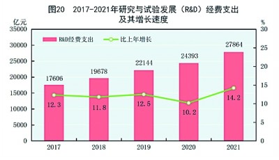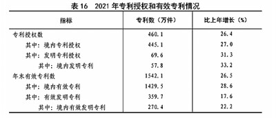全年研究與試驗(yàn)發(fā)展(R&D)經(jīng)費(fèi)支出27864億元,比上年增長14.2%,與國內(nèi)生產(chǎn)總值之比為2.44%,其中基礎(chǔ)研究經(jīng)費(fèi)1696億元。國家自然科學(xué)基金共資助4.87萬個(gè)項(xiàng)目。截至年末,正在運(yùn)行的國家重點(diǎn)實(shí)驗(yàn)室533個(gè),納入新序列管理的國家工程研究中心191個(gè),國家企業(yè)技術(shù)中心1636家,大眾創(chuàng)業(yè)萬眾創(chuàng)新示范基地212家。國家科技成果轉(zhuǎn)化引導(dǎo)基金累計(jì)設(shè)立36支子基金,資金總規(guī)模624億元。國家級(jí)科技企業(yè)孵化器[60]1287家,國家備案眾創(chuàng)空間[61]2551家。全年授予專利權(quán)460.1萬件,比上年增長26.4%;PCT專利申請受理量[62]7.3萬件。截至年末,有效專利1542.1萬件,其中境內(nèi)有效發(fā)明專利270.4萬件。每萬人口高價(jià)值發(fā)明專利擁有量[63]7.5件。全年商標(biāo)注冊773.9萬件,比上年增長34.3%。全年共簽訂技術(shù)合同67萬項(xiàng),技術(shù)合同成交金額37294億元,比上年增長32.0%。(見圖20)(見表16)