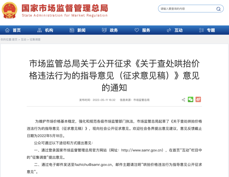 目前,《征求意見稿》全文已在市場(chǎng)監(jiān)管總局官網(wǎng)發(fā)布,意見反饋截止日期為2022年5月18日。