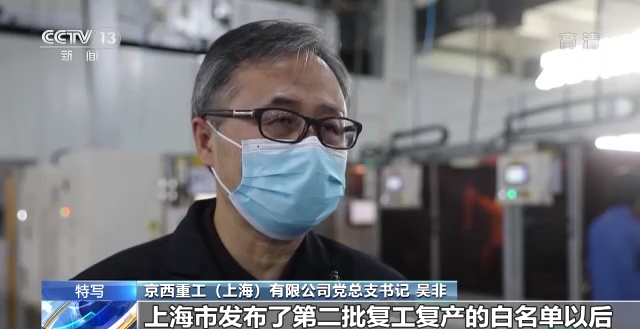 京西重工(上海)有限公司黨總支書記 吳非:上海市發(fā)布了第二批復(fù)工復(fù)產(chǎn)的白名單以后,政府及時(shí)地跟公司進(jìn)行對(duì)接,整個(gè)上海對(duì)企業(yè)的復(fù)工復(fù)產(chǎn)可以說(shuō)是上報(bào)一批就及時(shí)地批復(fù)了一批。