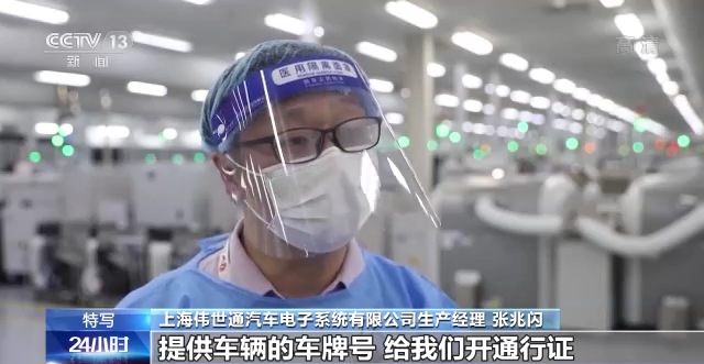 上海偉世通汽車電子系統(tǒng)有限公司生產(chǎn)經(jīng)理 張兆閃:物流通道方面說(shuō)真的政府也已經(jīng)給了我們很多的支持,比如說(shuō)提供車輛的車牌號(hào)和給我們開通行證等。