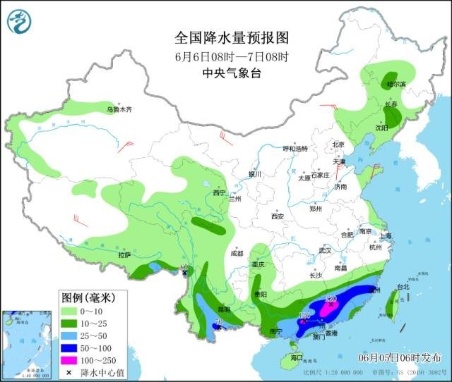 預(yù)計6日起,南方地區(qū)主雨帶將階段性南壓,強(qiáng)降雨主要位于江南南部和華南等地;6日,廣西東部、廣東、江西南部、福建中南部、云南南部等地部分地區(qū)有大到暴雨,局地大暴雨(100~220毫米)。