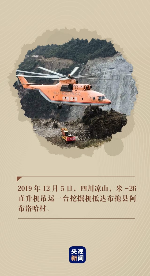 2019年11月30日,一架米-26直升機出現(xiàn)在村子上空。僅用八天時間,這架直升機成功將挖掘機、裝載機、潛孔鉆機一一運到村里,朝著最后的一公里掘進(jìn)。