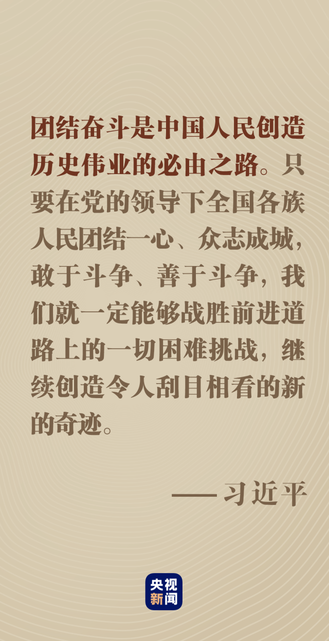 無論風(fēng)云如何變幻,無論挑戰(zhàn)如何嚴(yán)峻,只要我們精誠團(tuán)結(jié)、共同奮斗,就沒有任何力量能夠阻擋中國人民前進(jìn)的步伐。