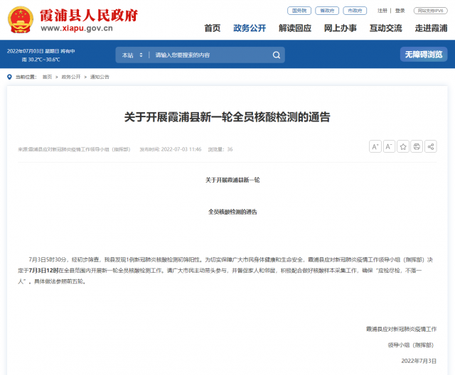 央視網(wǎng)消息:據(jù)霞浦縣人民政府網(wǎng)站消息,福建省寧德市霞浦縣應(yīng)對(duì)新冠肺炎疫情工作領(lǐng)導(dǎo)小組(指揮部)7月3日發(fā)布通報(bào), 7月3日5時(shí)30分,經(jīng)初步篩查,霞浦縣發(fā)現(xiàn)1例新冠肺炎核酸檢測(cè)初篩陽(yáng)性。為切實(shí)保障廣大市民身體健康和生命安全,霞浦縣應(yīng)對(duì)新冠肺炎疫情工作領(lǐng)導(dǎo)小組(指揮部)決定于7月3日12時(shí)在全縣范圍內(nèi)開(kāi)展新一輪全員核酸檢測(cè)工作。