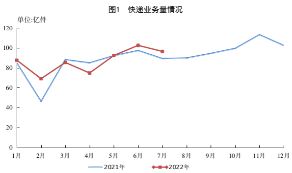 7月份,全國(guó)快遞服務(wù)企業(yè)業(yè)務(wù)量完成96.5億件,同比增長(zhǎng)8.0%;業(yè)務(wù)收入完成898.2億元,同比增長(zhǎng)8.6%。