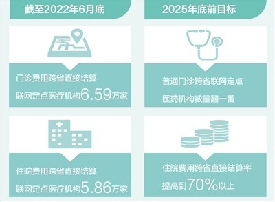 《通知》明確提出,2025年底前,住院費用跨省直接結(jié)算率提高到70%以上,普通門診跨省聯(lián)網(wǎng)定點醫(yī)藥機構(gòu)數(shù)量實現(xiàn)翻一番,群眾需求大、各地普遍開展的門診慢特病相關(guān)治療費用逐步納入跨省直接結(jié)算范圍,異地就醫(yī)備案規(guī)范便捷,基本實現(xiàn)醫(yī)保報銷線上線下都能跨省通辦。