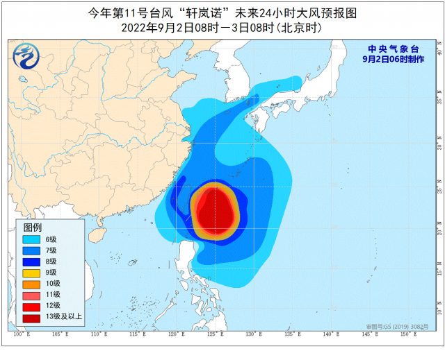 大風(fēng)預(yù)報(bào):9月2日08時(shí)至3日08時(shí),巴士海峽、臺(tái)灣海峽、臺(tái)灣以東洋面、東海大部及釣魚(yú)島附近海域、長(zhǎng)江口區(qū)、杭州灣,以及臺(tái)灣島北部和東部沿海、福建中北部沿海、浙江沿海、上海沿海、江蘇南部沿海將有6-8級(jí)大風(fēng),陣風(fēng)9-10級(jí),其中臺(tái)灣以東洋面的風(fēng)力有9-12級(jí),陣風(fēng)11-15級(jí),“軒嵐諾”中心經(jīng)過(guò)的附近海面的風(fēng)力有13-15級(jí),陣風(fēng)可達(dá)16-17級(jí)。
