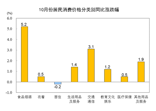 國家統(tǒng)計局:10月份居民消費價格同比上漲2.1%,環(huán)比上漲0.1%