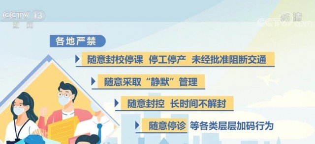 《通知》明確要求,各地嚴禁隨意封校停課、停工停產(chǎn)、未經(jīng)批準阻斷交通,隨意采取“靜默”管理,隨意封控、長時間不解封,隨意停診等各類層層加碼行為,加大通報、公開曝光力度,對造成嚴重后果的依法依規(guī)嚴肅追責。對于沒有發(fā)生疫情的地區(qū),要嚴格按照第九版防控方案確定的范圍對風險崗位、重點人員開展核酸檢測,既不能隨意擴大核酸檢測范圍,也不能隨意擴大人員管控、社區(qū)封控、隔離轉(zhuǎn)運范圍。糾正“一天兩檢”“一天三檢”等不科學做法。疫情發(fā)生地要分類有序做好外地滯留人員疏解,目的地不得拒絕接受滯留人員返回,既要避免疫情外溢,也不得加碼管控。