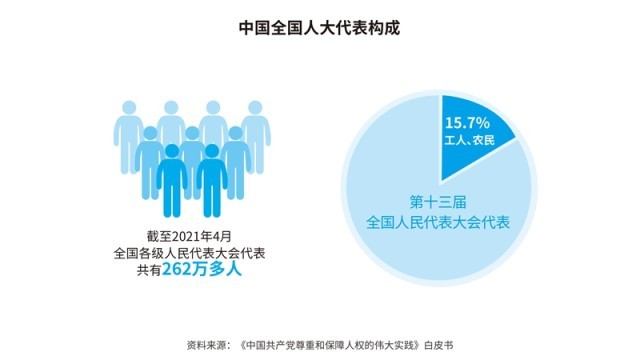 中國從本國國情實(shí)際出發(fā),不斷發(fā)展全過程人民民主,完善人民當(dāng)家作主制度體系,建立了人民代表大會(huì)制度、中國共產(chǎn)黨領(lǐng)導(dǎo)的多黨合作和政治協(xié)商制度、民族區(qū)域自治制度和基層群眾自治制度,為人民享有更加廣泛、更加充分、更加全面的民主權(quán)利奠定了堅(jiān)實(shí)的制度基礎(chǔ)。