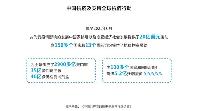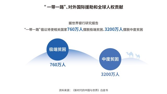 中國先后批準(zhǔn)或加入了30余項(xiàng)國際人權(quán)文書,其中包括6項(xiàng)聯(lián)合國核心人權(quán)條約;累計(jì)共向166個(gè)國家和國際組織提供了援助,派遣60多萬名援助人員;多次無條件免除重債窮國和最不發(fā)達(dá)國家對(duì)華到期政府無息貸款債務(wù)。在聯(lián)合國維和行動(dòng)中,中國是安理會(huì)常任理事國第一大出兵國,30多年來累計(jì)派出維和官兵5萬余人次。共建“一帶一路”已成為助力各國發(fā)展、深受世界歡迎的新興國際公共產(chǎn)品,據(jù)世界銀行研究報(bào)告,到2030年,將使相關(guān)國家760萬人擺脫極端貧困、3200萬人擺脫中度貧困。新冠肺炎疫情暴發(fā)以來,中國努力促進(jìn)新冠疫苗在全球范圍內(nèi)公平合理分配,成為全球?qū)ν馓峁┮呙鐢?shù)量最多的國家。