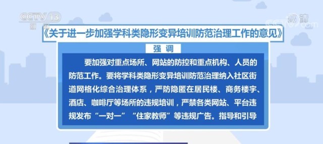 央視網(wǎng)消息:近日,教育部辦公廳等十二部門聯(lián)合印發(fā)了《關(guān)于進(jìn)一步加強(qiáng)學(xué)科類隱形變異培訓(xùn)防范治理工作的意見》。《意見》要求,到2024年6月,全面清除隱形變異培訓(xùn)。