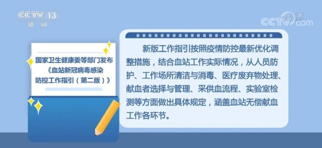 央視網(wǎng)消息:為落實進一步優(yōu)化新冠肺炎疫情防控措施相關(guān)要求,指導采供血機構(gòu)科學有效做好無償獻血工作,國家衛(wèi)生健康委辦公廳、中央軍委后勤保障部衛(wèi)生局組織專家對2021年印發(fā)的《血站新冠肺炎疫情常態(tài)化防控工作指引》進行修訂,形成《血站新冠病毒感染防控工作指引(第二版)》,指導采供血機構(gòu)切實做好新形勢下疫情防控工作,保障血站工作人員和獻血者安全,實現(xiàn)血液安全供應。