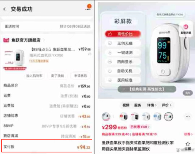 94元購(gòu)買的血氧儀已漲價(jià)至299元(央廣網(wǎng)發(fā))