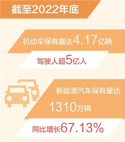 本報北京1月11日電 (記者張?zhí)炫啵┕膊?1日發(fā)布統(tǒng)計顯示,2022年全國機(jī)動車保有量達(dá)4.17億輛,其中汽車3.19億輛;全國機(jī)動車駕駛?cè)诉_(dá)5.02億人,其中汽車駕駛?cè)?.64億人。2022年全國新注冊登記機(jī)動車3478萬輛,新領(lǐng)證駕駛?cè)?923萬人。