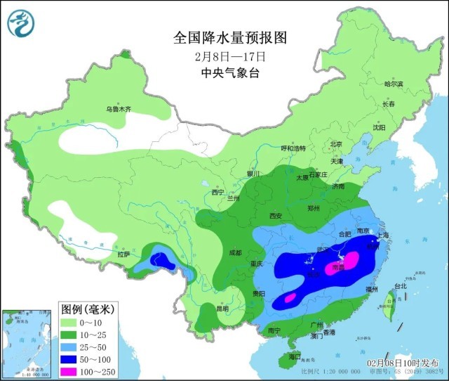 從2月7日起,我國(guó)中東部地區(qū)出現(xiàn)大范圍雨雪天氣。8日白天,甘肅中東部、寧夏中南部、陜西中部等部分地區(qū)出現(xiàn)中到大雪或雨夾雪,陜西寶雞局地暴雪;湖南南部、江西中部、浙江西南部、福建北部、廣西東北部等部分地區(qū)出現(xiàn)中到大雨,江西上饒局地暴雨。