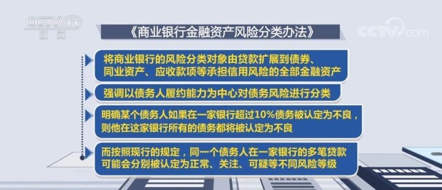 辦法還要求商業(yè)銀行應(yīng)至少每季度對全部金融資產(chǎn)進行一次風(fēng)險分類,有效防范化解信用風(fēng)險。這一辦法將從今年7月1日起施行。