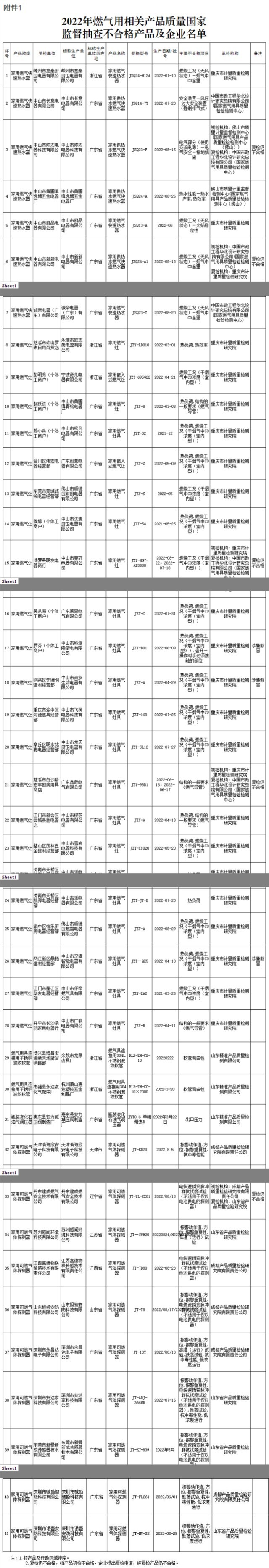 國(guó)家市場(chǎng)監(jiān)管總局抽查610批次燃?xì)猱a(chǎn)品 發(fā)現(xiàn)41批次產(chǎn)品不合格
