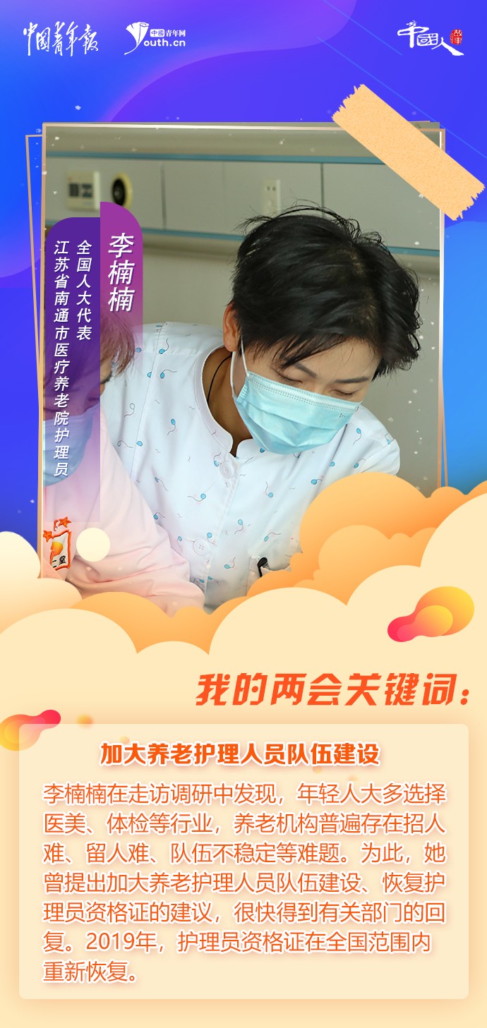 同樣是連任的全國(guó)人大代表,李楠楠投身養(yǎng)老護(hù)理行業(yè)已有10年。此前5年的履職經(jīng)歷,讓她深刻感受到一份建議能帶來的改變。