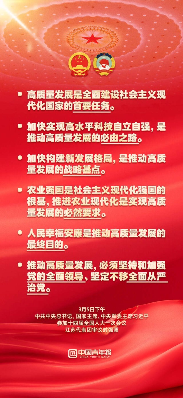必須完整、準確、全面貫徹新發(fā)展理念,必須更好統(tǒng)籌質(zhì)的有效提升和量的合理增長,視質(zhì)量為生命,以高質(zhì)量為追求......3月5日下午,習近平總書記在參加江蘇代表團審議時對高質(zhì)量發(fā)展作出一系列重要論述。轉(zhuǎn)存收藏,學習總書記最新論述,牢牢把握高質(zhì)量發(fā)展。