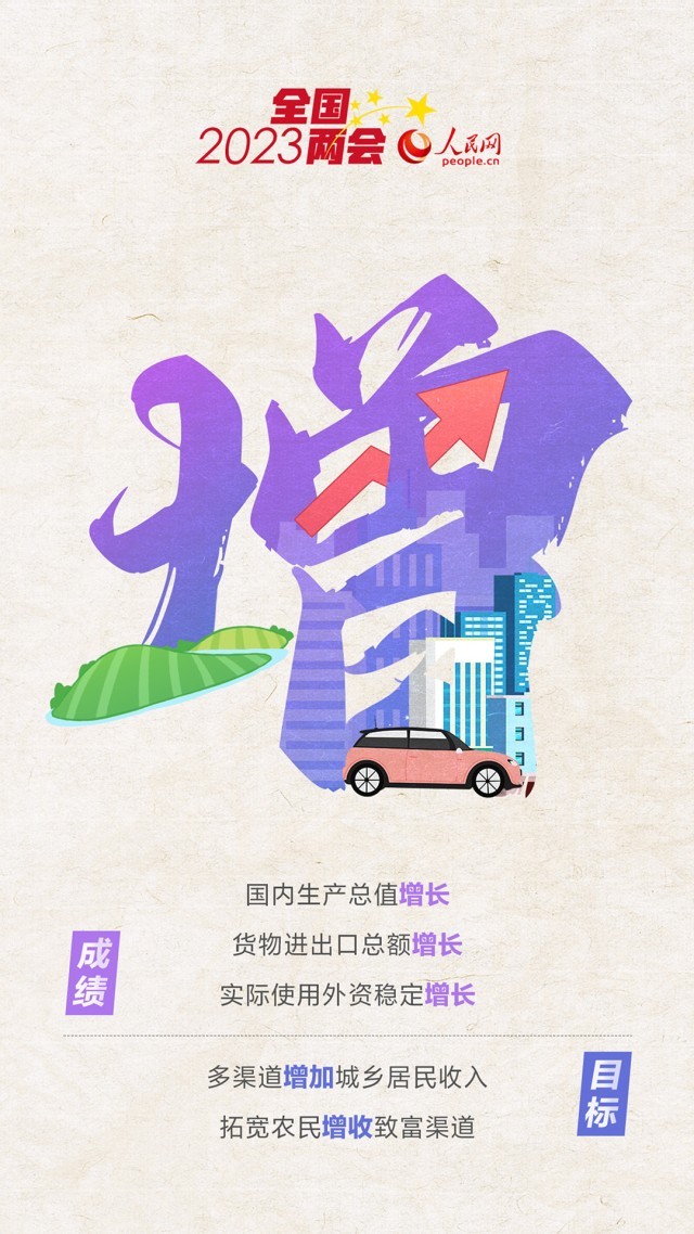 國(guó)內(nèi)生產(chǎn)總值增長(zhǎng)5%左右,城鎮(zhèn)新增就業(yè)1200萬(wàn)人左右,多渠道增加城鄉(xiāng)居民收入,拓寬農(nóng)民增收致富渠道……這些“增”字與你有關(guān)。