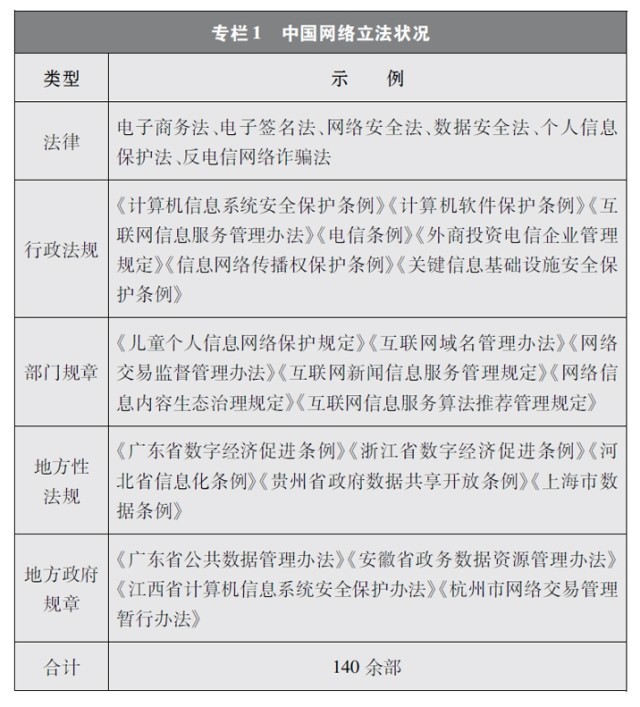 中國網(wǎng)絡(luò)立法隨著互聯(lián)網(wǎng)發(fā)展經(jīng)歷了從無到有、從少到多、由點到面、由面到體的發(fā)展過程。第一階段從1994年至1999年,是接入互聯(lián)網(wǎng)階段。上網(wǎng)用戶和設(shè)備數(shù)量穩(wěn)步增加。這一階段網(wǎng)絡(luò)立法主要聚焦于網(wǎng)絡(luò)基礎(chǔ)設(shè)施安全,即計算機系統(tǒng)安全和聯(lián)網(wǎng)安全。第二階段從2000年至2011年,是PC互聯(lián)網(wǎng)階段。隨著計算機數(shù)量逐步增加、上網(wǎng)資費逐步降低,用戶上網(wǎng)日益普遍,網(wǎng)絡(luò)信息服務(wù)迅猛發(fā)展。這一階段網(wǎng)絡(luò)立法轉(zhuǎn)向側(cè)重網(wǎng)絡(luò)服務(wù)管理和內(nèi)容管理。第三階段從2012年至今,是移動互聯(lián)網(wǎng)階段。這一階段網(wǎng)絡(luò)立法逐步趨向全面涵蓋網(wǎng)絡(luò)信息服務(wù)、信息化發(fā)展、網(wǎng)絡(luò)安全保護等在內(nèi)的網(wǎng)絡(luò)綜合治理。在這一進程中,中國制定出臺網(wǎng)絡(luò)領(lǐng)域立法140余部,基本形成了以憲法為根本,以法律、行政法規(guī)、部門規(guī)章和地方性法規(guī)、地方政府規(guī)章為依托,以傳統(tǒng)立法為基礎(chǔ),以網(wǎng)絡(luò)內(nèi)容建設(shè)與管理、網(wǎng)絡(luò)安全和信息化等網(wǎng)絡(luò)專門立法為主干的網(wǎng)絡(luò)法律體系,為網(wǎng)絡(luò)強國建設(shè)提供了堅實的制度保障。