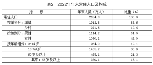 表2 2022年年末常住人口及構(gòu)成