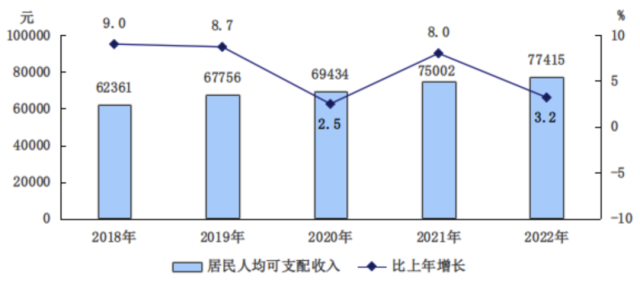 重磅!2022年北京人均可支配收入77415元!