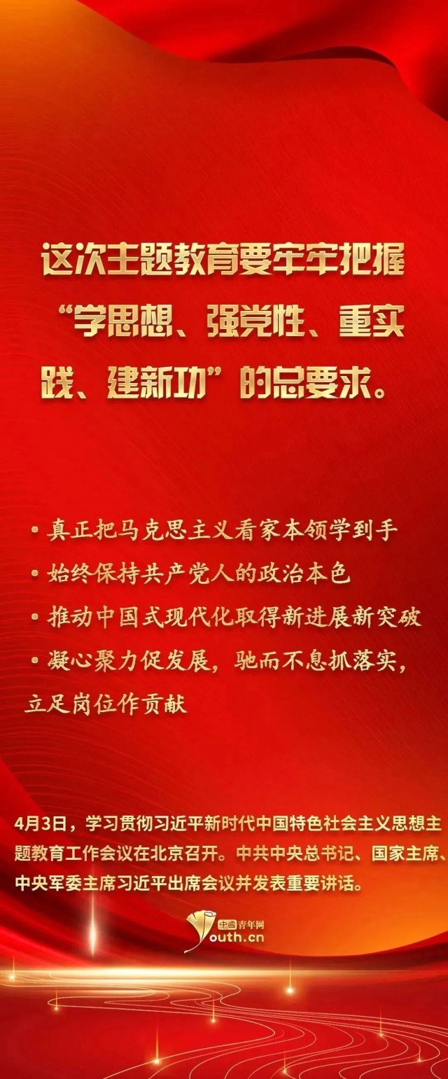 4月3日,學習貫徹習近平新時代中國特色社會主義思想主題教育工作會議在北京召開。中共中央總書記、國家主席、中央軍委主席習近平出席會議并發(fā)表重要講話。