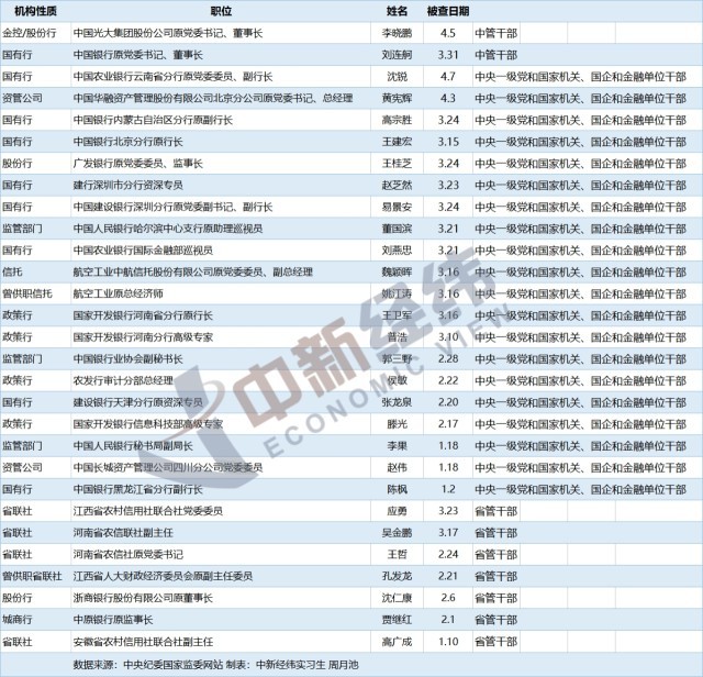 反腐重拳出擊!金融系統(tǒng)年內至少29人被查,9人出自國有行