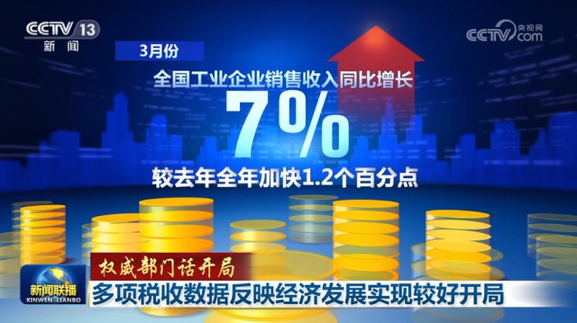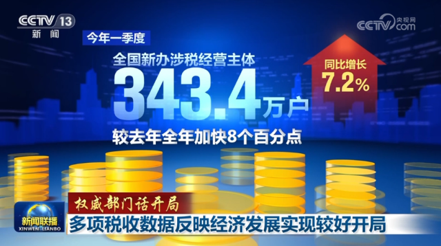 央視網(wǎng)消息(新聞聯(lián)播):在國新辦今天(4月6日)舉行的“權(quán)威部門話開局”系列主題新聞發(fā)布會(huì)上,國家稅務(wù)總局負(fù)責(zé)人表示,多項(xiàng)稅收數(shù)據(jù)反映出我國經(jīng)濟(jì)發(fā)展實(shí)現(xiàn)了較好開局。