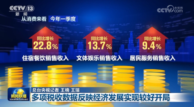 從消費(fèi)來看,一季度,住宿餐飲、文體娛樂、居民服務(wù)等銷售收入同比分別增長22.8%、13.7%和9.4%,回升較為明顯,潛力加快釋放。