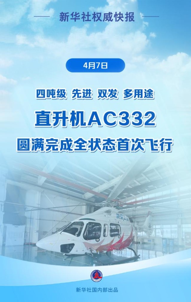 我國全新研制的AC332直升機圓滿完成全狀態(tài)首次飛行