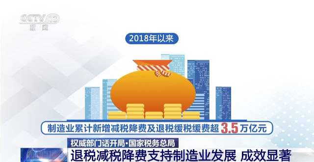 據(jù)介紹,在一系列退稅減稅降費舉措中,下調制造業(yè)等領域的增值稅稅率、率先提高制造業(yè)研發(fā)費用加計扣除比例、加大制造業(yè)增值稅留抵退稅力度等減負措施,有效支持了制造業(yè)緩解經營壓力、增強創(chuàng)新動力、激活發(fā)展?jié)摿Α?/p>
