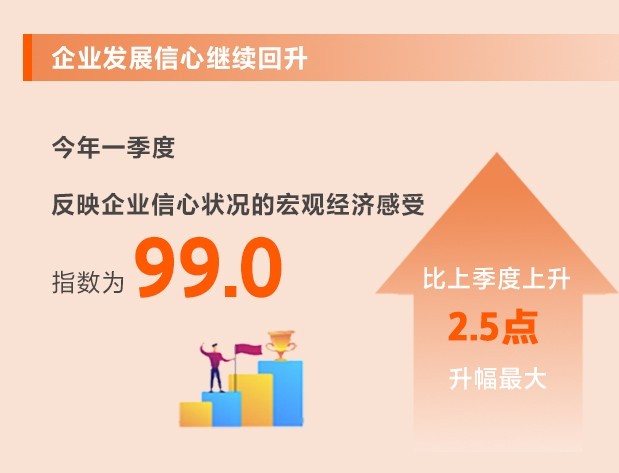 伴隨著疫情防控較快平穩(wěn)轉(zhuǎn)段,生產(chǎn)生活秩序加快恢復(fù),各項穩(wěn)經(jīng)濟政策措施持續(xù)顯效,市場預(yù)期明顯好轉(zhuǎn),一季度國民經(jīng)濟發(fā)展實現(xiàn)平穩(wěn)開局,企業(yè)經(jīng)營環(huán)境隨之好轉(zhuǎn)。