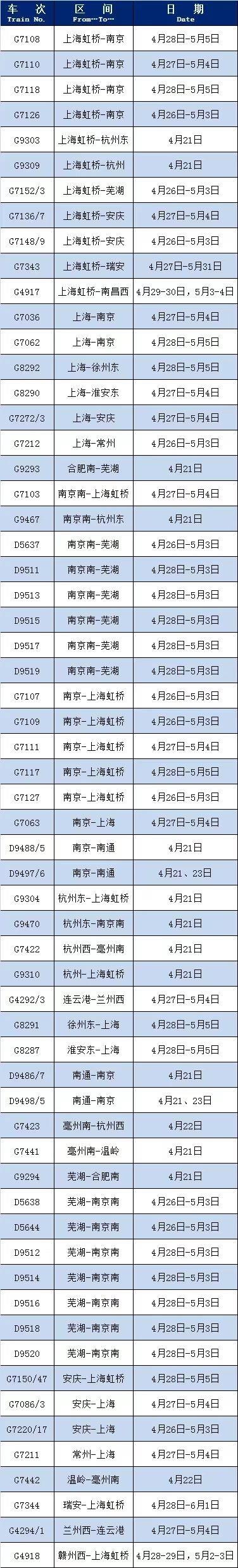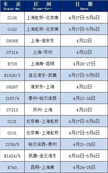 長(zhǎng)三角鐵路五一假期增開(kāi)多趟列車(chē) 詳細(xì)車(chē)次公布