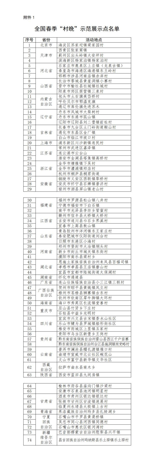 文旅部公布2023年“四季村晚”主會(huì)場(chǎng)和示范展示點(diǎn)名單