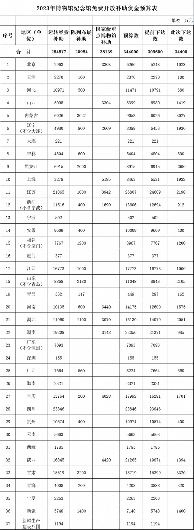 央視網(wǎng)消息:據(jù)財政部網(wǎng)站消息,根據(jù)《關(guān)于全國博物館、紀念館免費開放的通知》(中宣發(fā)〔2008〕2號)精神,財政部下達2023年博物館紀念館免費開放補助資金(項目代碼:10000013Z135050000044,2023年政府收支分類科目:1100208結(jié)算補助收入)。數(shù)據(jù)顯示,全國預(yù)算344000萬元,提前下達309600萬元,此次下達34400萬元。