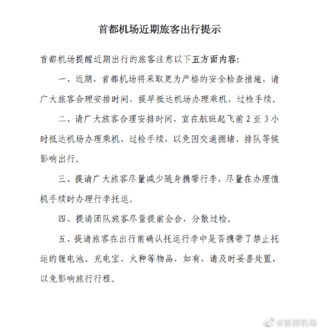 首都機(jī)場(chǎng):近期將采取更為嚴(yán)格的安檢措施