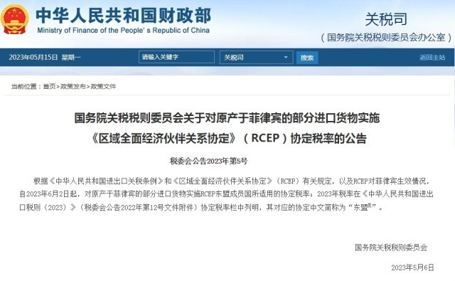 6月2日起中國將與菲律賓相互實施RCEP關(guān)稅減讓