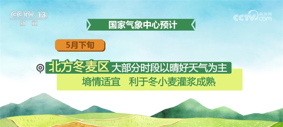國(guó)家氣象中心預(yù)計(jì),5月下旬,北方冬麥區(qū)大部分時(shí)段以晴好天氣為主,墑情適宜,利于冬小麥灌漿成熟;江漢、江南及四川盆地、貴州等地有較強(qiáng)降雨,夏收作業(yè)將短暫受阻;江淮大部天氣較好,適宜夏收。