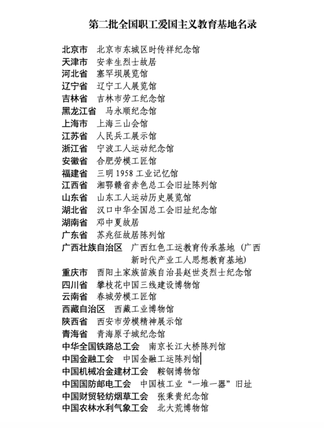 全國(guó)總工會(huì)命名第二批全國(guó)職工愛國(guó)主義教育基地