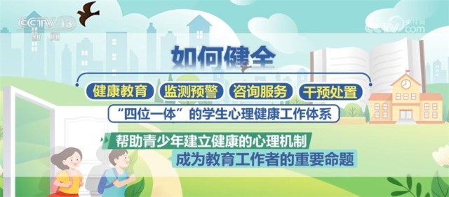 央視網(wǎng)消息:為了提前發(fā)現(xiàn)、干預(yù)學(xué)生心理問題,全國多地的大中小學(xué)校也在積極行動,強化心理監(jiān)測預(yù)警,整合社會資源,筑牢學(xué)生心理健康“防護墻”。