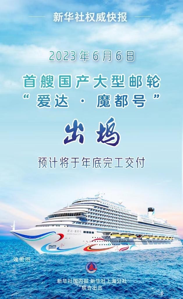 6月6日,由中國船舶外高橋造船有限公司建造的首艘國產大型郵輪“愛達·魔都號”出塢,