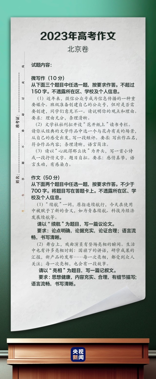 - 2023高考北京語(yǔ)文作文題公布:“續(xù)航”和 “亮相” 二選一