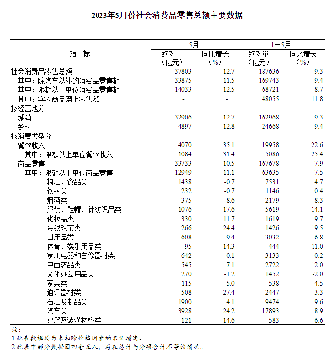 國家統(tǒng)計(jì)局:今年5月份社會(huì)消費(fèi)品零售總額增長12.7%