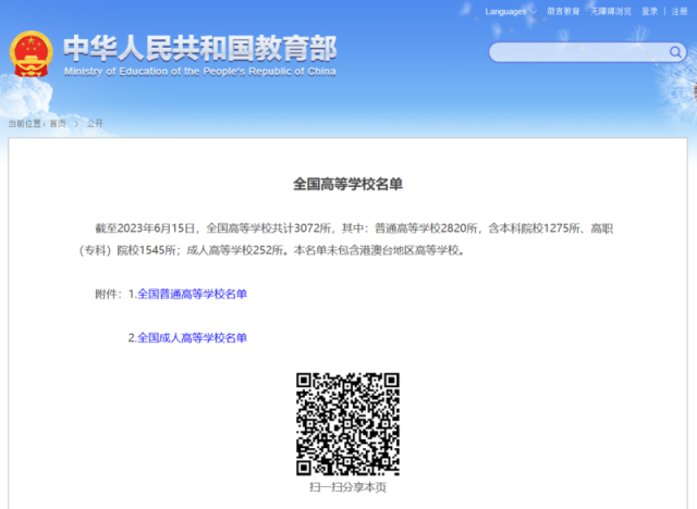 3072所!教育部發(fā)布全國高等學校名單