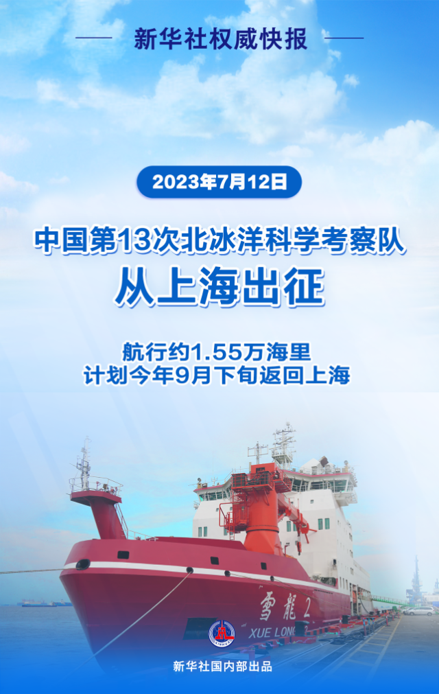7月12日,由自然資源部組織的中國(guó)第13次北冰洋科學(xué)考察隊(duì),乘坐“雪龍2”號(hào)極地科考破冰船,從上海出征,前往北冰洋執(zhí)行科學(xué)考察任務(wù)。本次考察預(yù)計(jì)總航程約1.55萬(wàn)海里,計(jì)劃今年9月下旬返回上海。