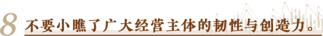 書寫這份“中國(guó)經(jīng)濟(jì)半年報(bào)”的,不光是宏觀政策的制定者,還有億萬經(jīng)營(yíng)主體。它們?cè)谑袌?chǎng)經(jīng)濟(jì)風(fēng)風(fēng)雨雨中摸爬滾打過來,承載著就業(yè),創(chuàng)造著財(cái)富,推動(dòng)著創(chuàng)新,體現(xiàn)著社會(huì)責(zé)任。無論是服務(wù)業(yè)還是制造業(yè),無論是傳統(tǒng)產(chǎn)業(yè)還是戰(zhàn)略性新興產(chǎn)業(yè),哪一行哪一業(yè),缺得了充滿活力的經(jīng)營(yíng)主體?看宏觀政策是否有效,標(biāo)準(zhǔn)之一就是看能否持續(xù)廣泛激發(fā)經(jīng)營(yíng)主體的活力。一句話,任何時(shí)候都不要小瞧了廣大經(jīng)營(yíng)主體的韌性與創(chuàng)造力,尊重他們,幫助他們,相信他們。