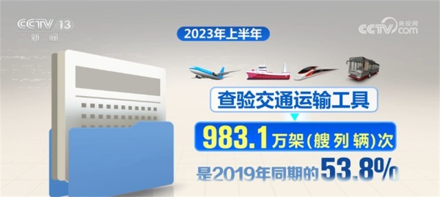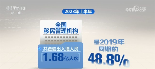 據(jù)國家移民管理局統(tǒng)計(jì),2023年上半年,全國移民管理機(jī)構(gòu)共查驗(yàn)出入境人員1.68億人次,是2019年同期的48.8%,其中內(nèi)地居民8027.6萬人次,港澳臺居民7490.3萬人次,外國人843.8萬人次(不含邊民);查驗(yàn)交通運(yùn)輸工具983.1萬架(艘、列、輛)次,是2019年同期的53.8%,其中,飛機(jī)20.4萬架次、船舶19.1萬艘次、火車4.4萬列次、汽車939.2萬輛次。